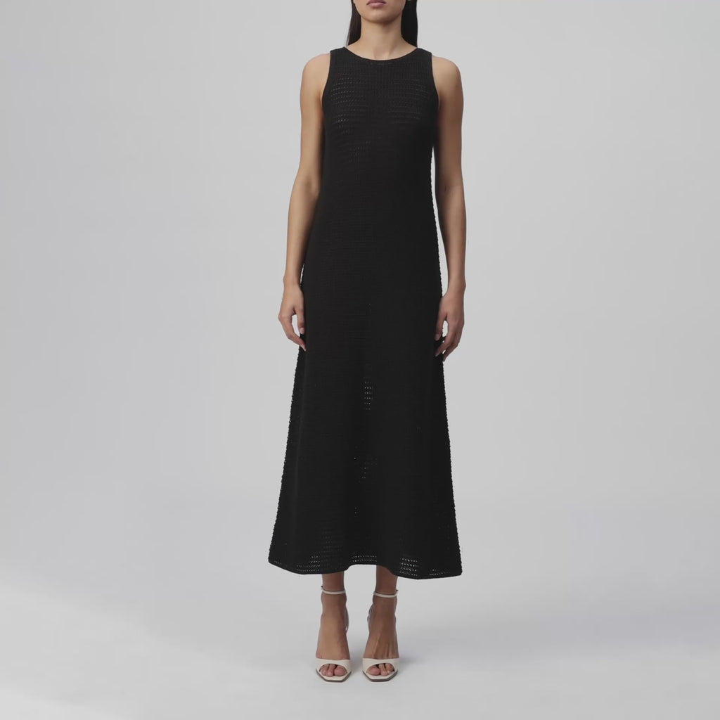 Ärmelloses Strickkleid in Classic Fit mit Rundhalsausschnitt und grober Strickstruktur. Die A-Linie und Maxi-Länge verleihen dem Modell eine klare Silhouette, während die reine Baumwolle für einen trockenen Griff sorgt.